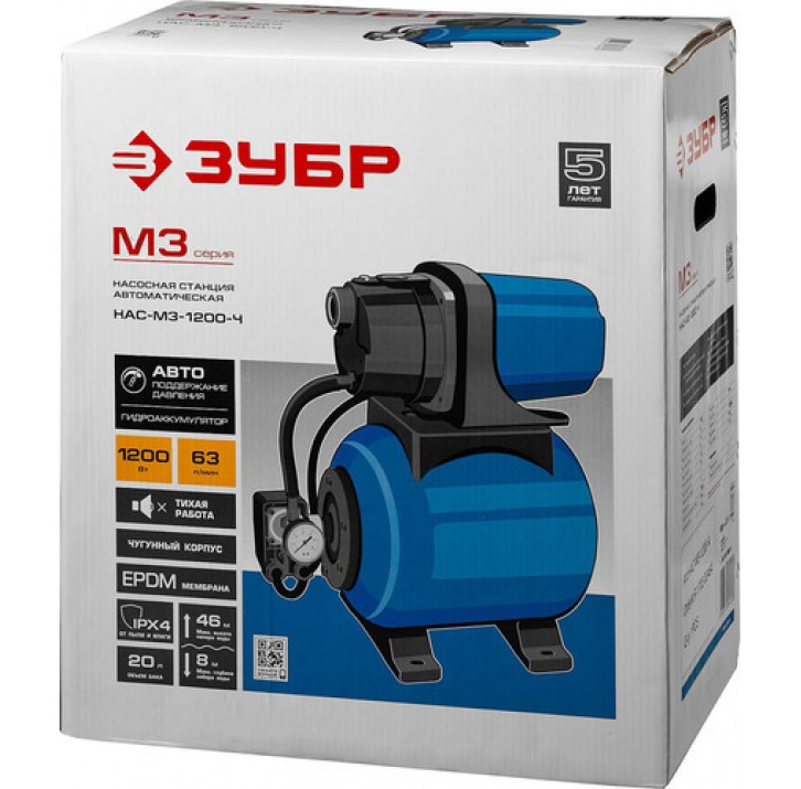 ЗУБР 1200 Вт, 63 л/мин, станция насосная М3 НАС-М3-1200-Ч Мастер
