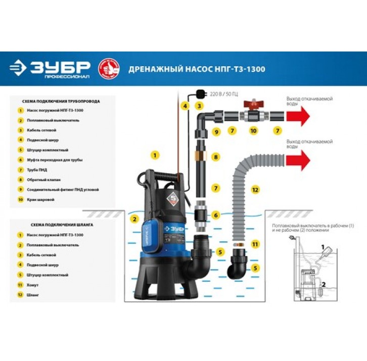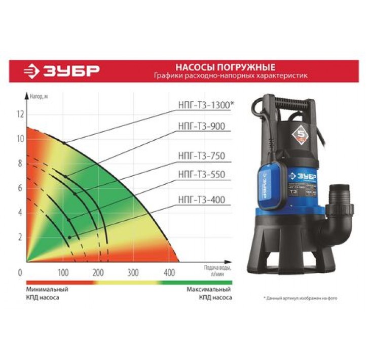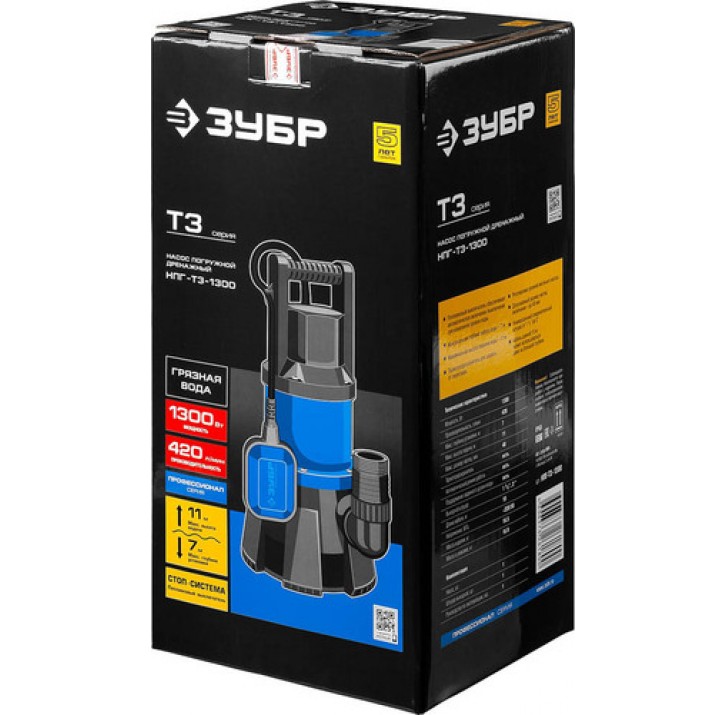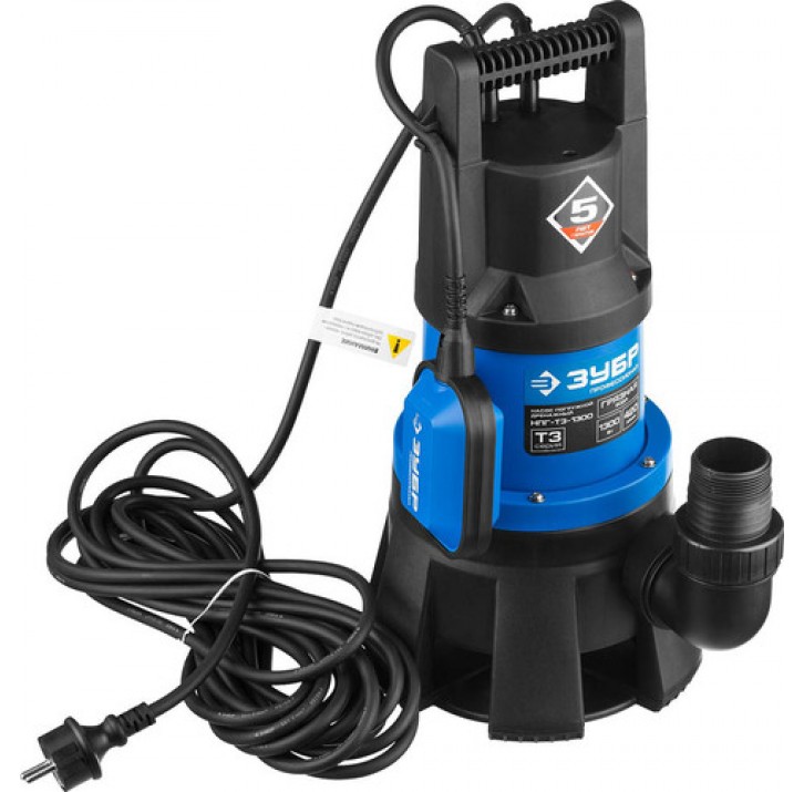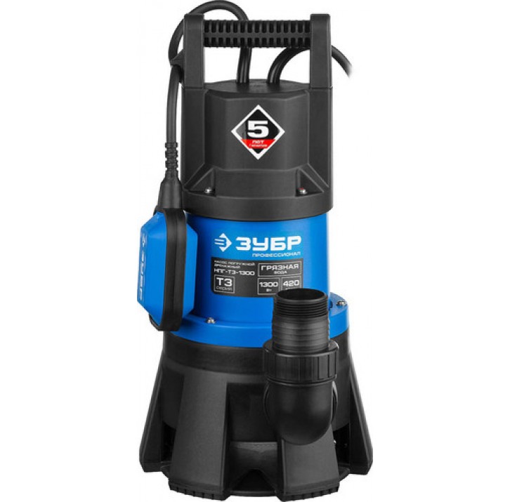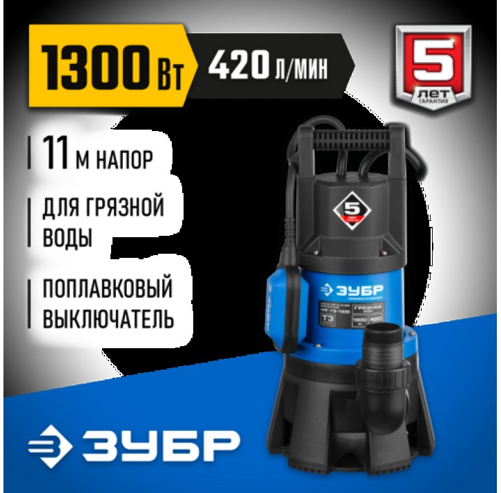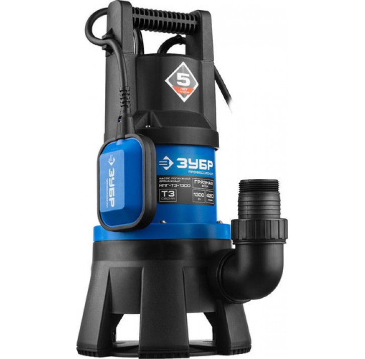 ЗУБР 1300 Вт, 420 л/мин, насос погружной дренажный для грязной воды НПГ-Т3-1300 Профессионал