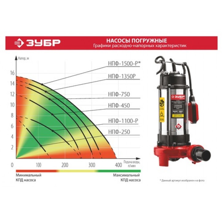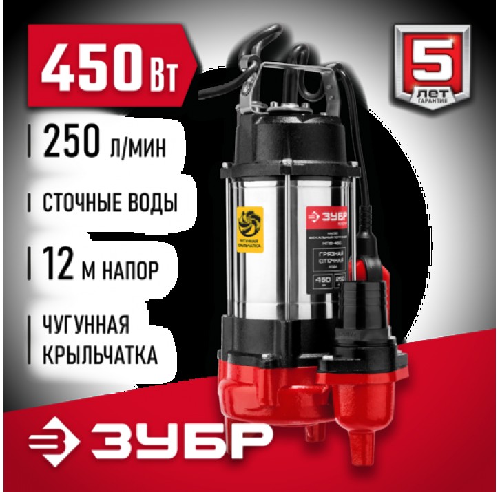 ЗУБР 450 Вт, 250 л/мин, насос фекальный погружной для загрязненной воды НПФ-450