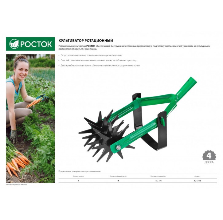 РОСТОК 230 мм длина рабочей части, углеродистая сталь, покрытие - красска, ротационный, четырёхдиско