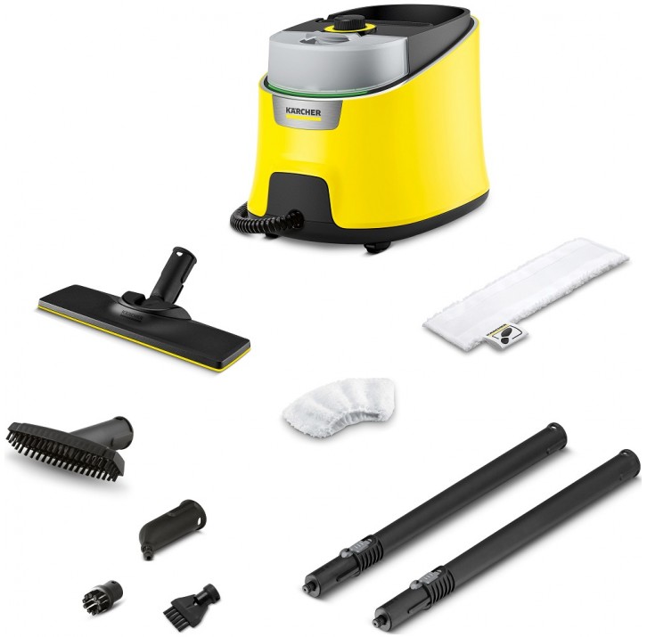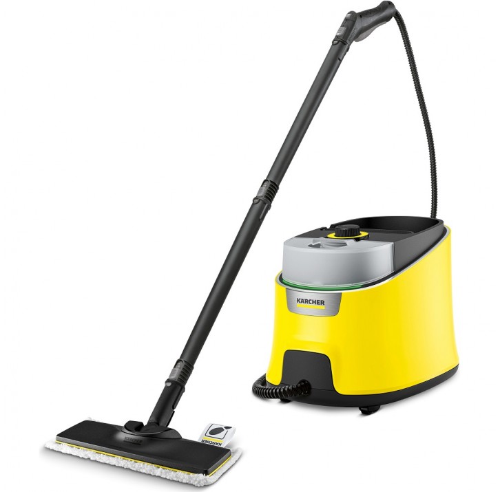 Мощный пароочиститель Karcher SC 4 Deluxe EasyFix, развивающий давление пара 4,0 бар, обеспечивает продолжительную непрерывную работу – благодаря съемному бачку, который можно в любой момент наполнить водой. При чистке с его помощью твердых поверхностей уничтожаются 99,99 % вирусов и распространенных в быту бактерий. Очень большой встроенный отсек для принадлежностей позволяет удобно разместить насадки, кабель и шланг. Другими особенностями оснащения являются светодиодный индикатор режимов, эргономичная насадка для пола EasyFix с шарниром, пластинчатой подошвой и практичной системой крепления салфетки липучкой и многочисленные аксессуары для удаления стойких загрязнений с кухонных плит, вытяжек, из швов керамической плитки и т. д. Кроме того, аппарат имеет 3-ступенчатый регулятор подачи пара, позволяющий адаптировать интенсивность обработки поверхностей к их виду и степени загрязненности.