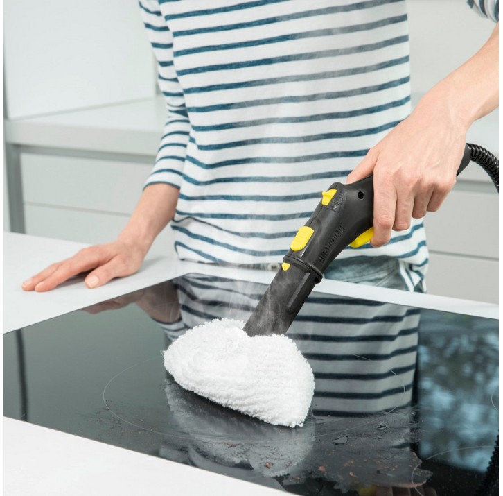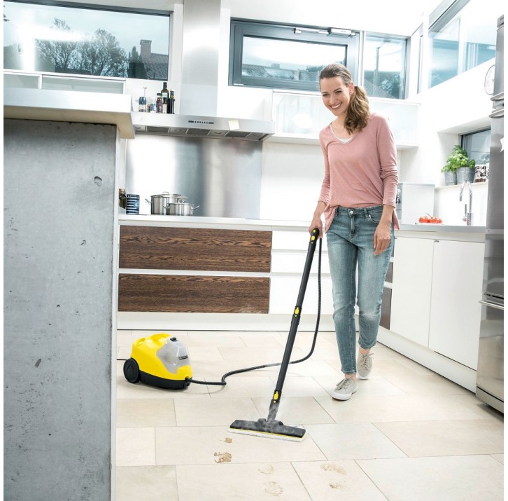 Пароочиститель Karcher SC 4 EasyFix с отсеками для хранения кабеля и принадлежностей, а также держателем, позволяющим закреплять насадку для пола на время перерывов в работе, обеспечивает максимальное удобство уборки. Насадка для пола EasyFix отличается высокой эргономичностью благодаря гибкому шарниру, а ее пластинчатая подошва гарантирует превосходный результат чистки. Микроволоконная салфетка для пола легко устанавливается на этой насадке при помощи липучки и быстро снимается без контакта с грязью. 2-ступенчатая регулировка подачи пара обеспечивает оптимальную адаптацию к виду очищаемой поверхности и ее загрязненности. Широкий выбор принадлежностей позволяет тщательно очищать кафель, кухонные плиты, вытяжки и т. д., удаляя при этом даже стойкие загрязнения из узких швов и стыков, а съемный бачок, наполняемый водой без отключения аппарата, исключает перерывы в работе. Пароочиститель SC 4 EasyFix позволяет без применения чистящих средств производить уборку во всем доме. При тщательной очистке пароочистителем