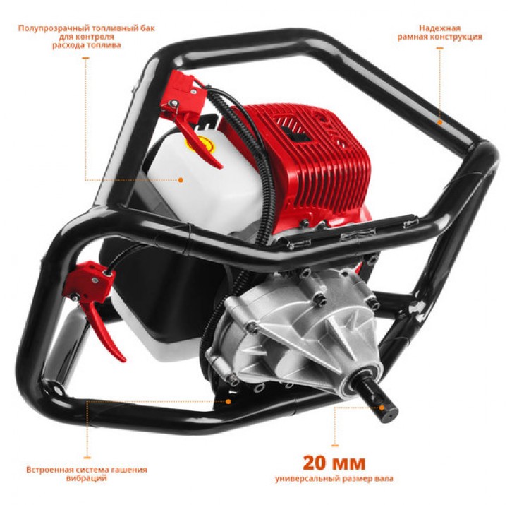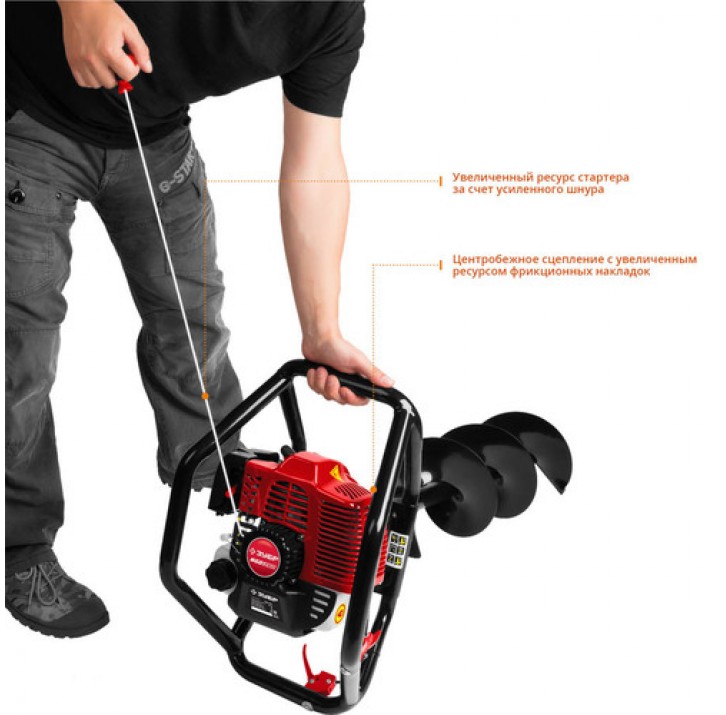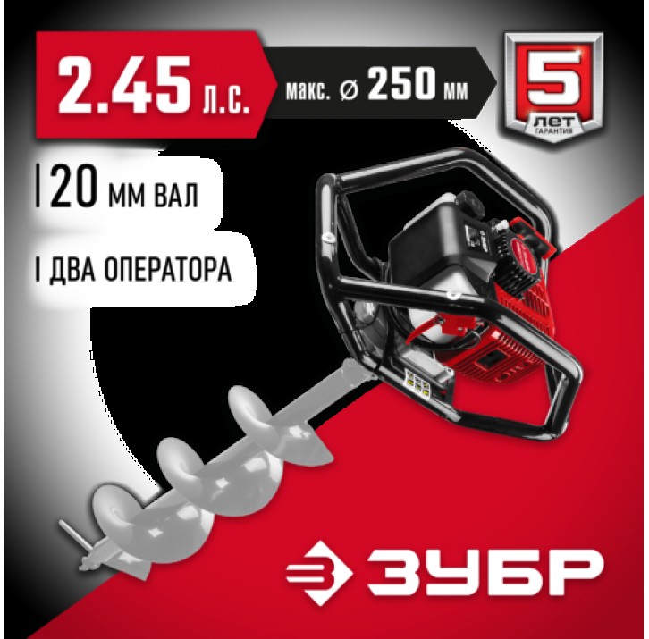 ЗУБР ф60-250 мм, 52 смф, 2 оператора, без шнека, мотобур (бензобур) МБ2-250 Мастер