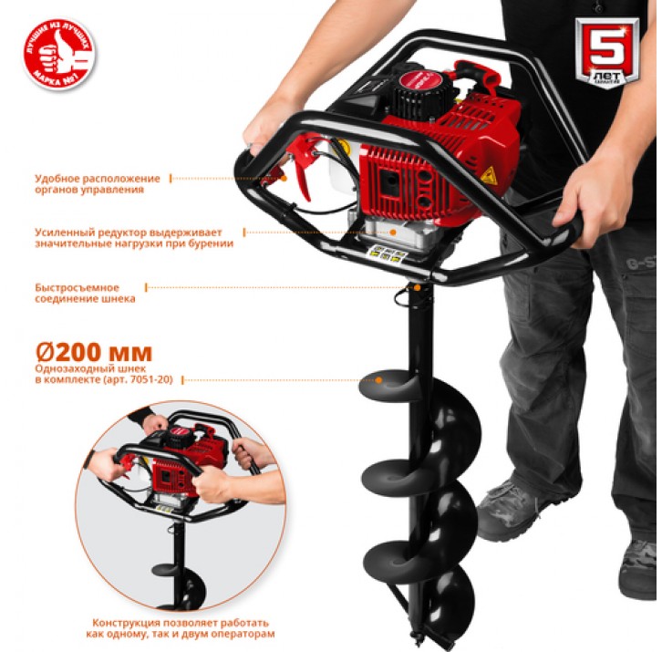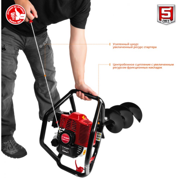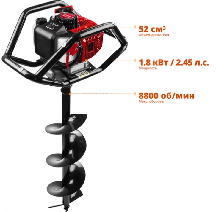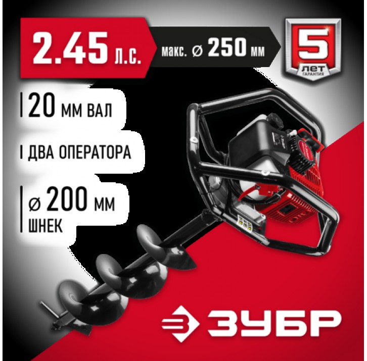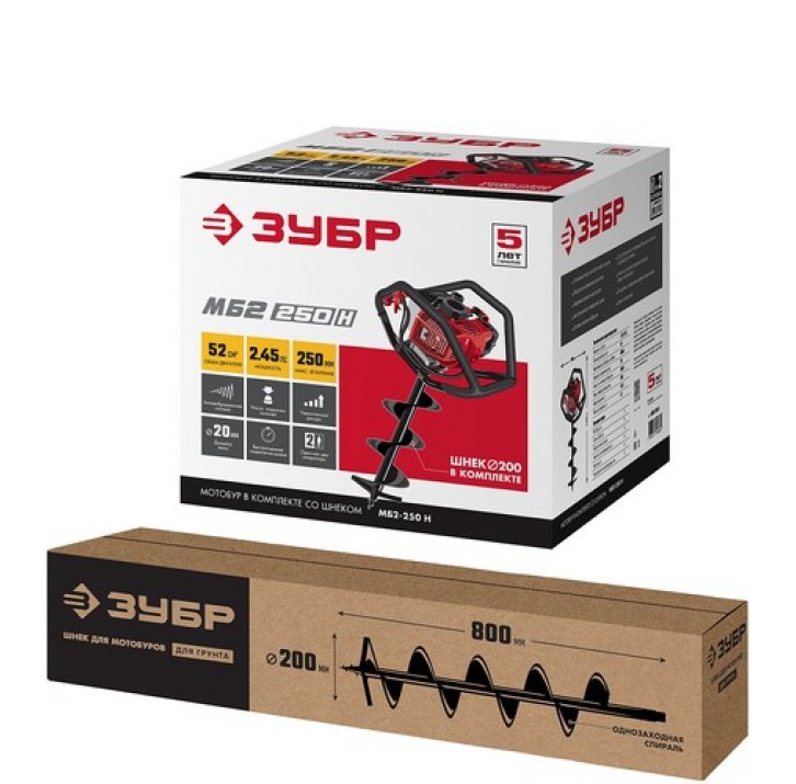 ЗУБР ф60-250 мм, 52 смф, 2 оператора, со шнеком, мотобур (бензобур) МБ2-250 Н Мастер