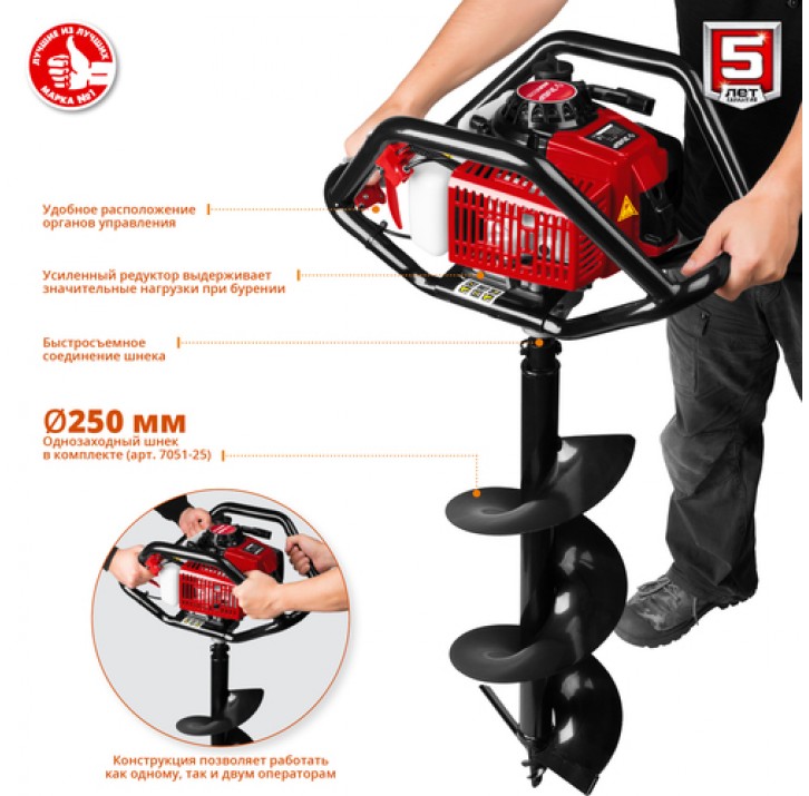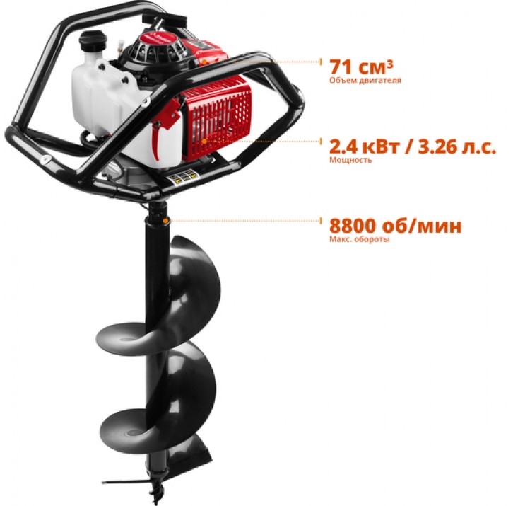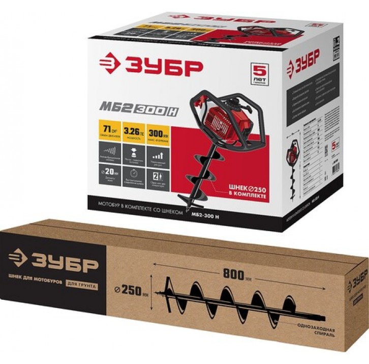ЗУБР ф60-300 мм, 71 смф, 2 оператора, со шнеком, мотобур (бензобур) МБ2-300 Н Мастер