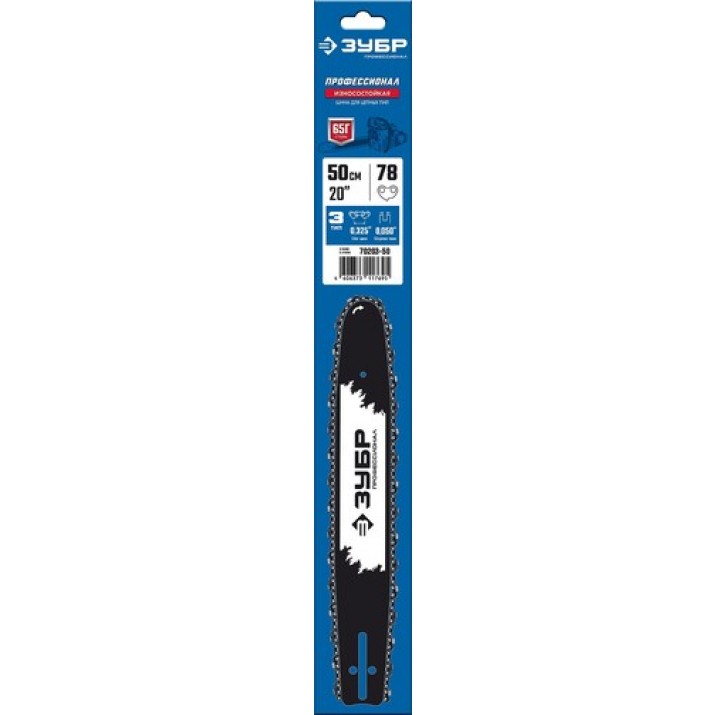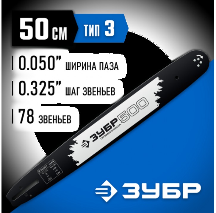 ЗУБР шаг 0.325", паз 0.050", длина 20" (50 см), шина для бензопил 70203-50 Профессионал