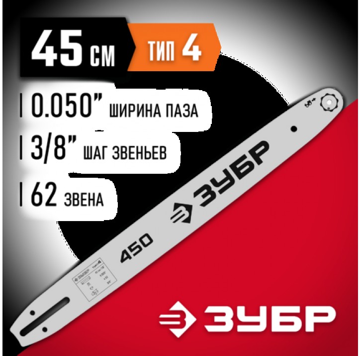 ЗУБР тип 4 шаг 3/8 (0.375)", паз 1.3 мм, 45 см, шина для электро и бензопил 70204-45 Мастер