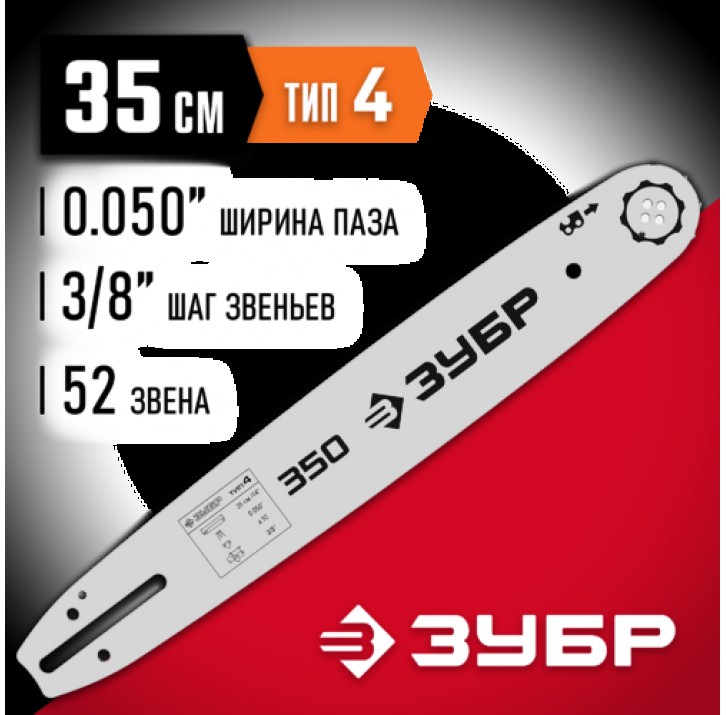 ЗУБР тип 4 шаг 3/8" паз 1.3 мм 35 см шина для бензопилы 70204-35 Мастер