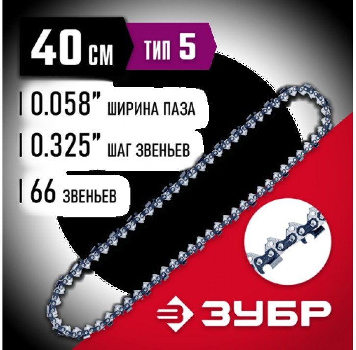 ЗУБР тип 5 шаг 0.325" паз 1.5 мм 66 звена цепь для бензопилы 70305-40 Мастер