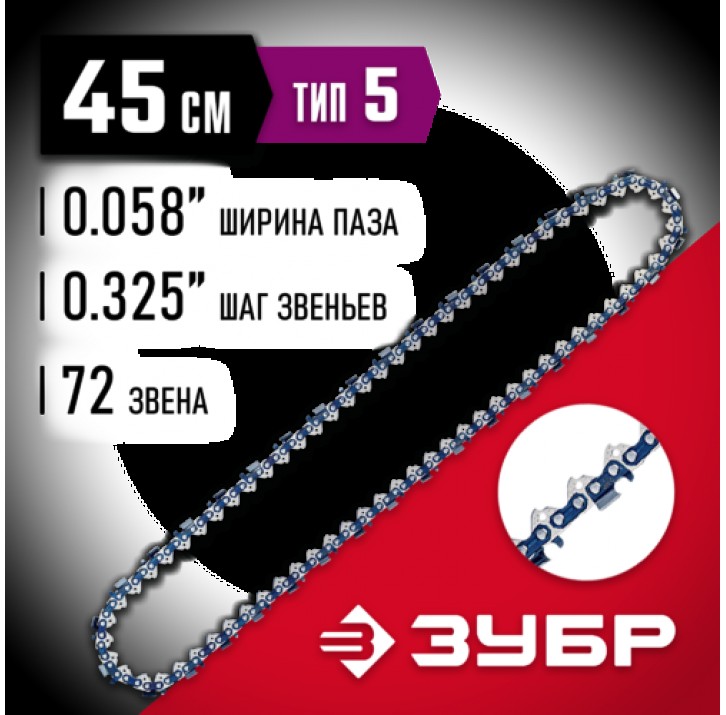 ЗУБР тип 5 шаг 0.325" паз 1.5 мм 72 звена цепь для бензопилы 70305-45 Мастер