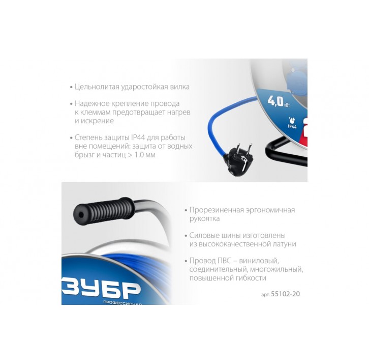 ЗУБР ПВС 325 ПВС 3х2.5 20м 4000Вт IP44, Силовой удлинитель на стальной катушке (55102-20)