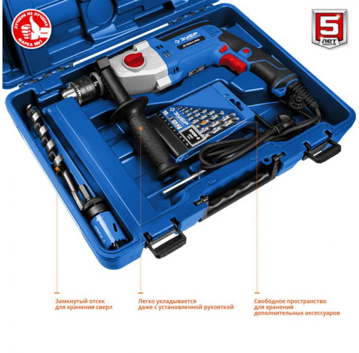 ЗУБР 850 Вт, кейс, дрель ударная ДУ-П850-2 ЭРМК Профессионал