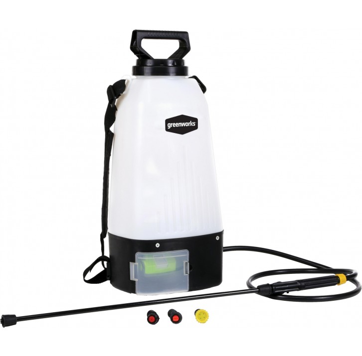 Аккумуляторный садовый опрыскиватель Greenworks 24V сделает полив растений и опрыскивание огорода и сада проще и эффективнее. Бак 7,5 л закрепляется на спине как рюкзак, и благодаря небольшому весу и эргономичной конструкции лямок удобен в работе.