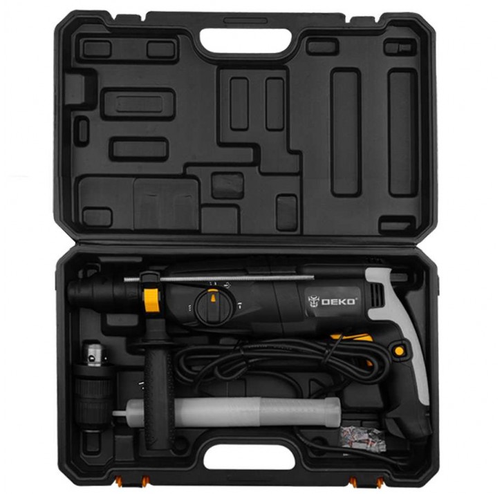 Перфоратор DEKO DKH 1100W в кейсе + набор из 5 буров SDS+ и патрон 063-4159