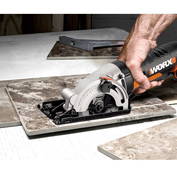 WORX SAW WX527.9 – лёгкая и компактная мини-пила. Подходит для распиловки дерева, тонкого металла, плитки, гипсокартона и пластика. Оборудована диском с наружным диаметром 85 мм. Поставляется без аккумулятора и зарядного устройства.