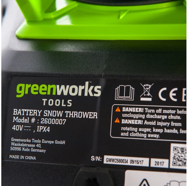 Снегоуборочник GREENWORKS GD40ST 40 V аккумуляторный 2600007