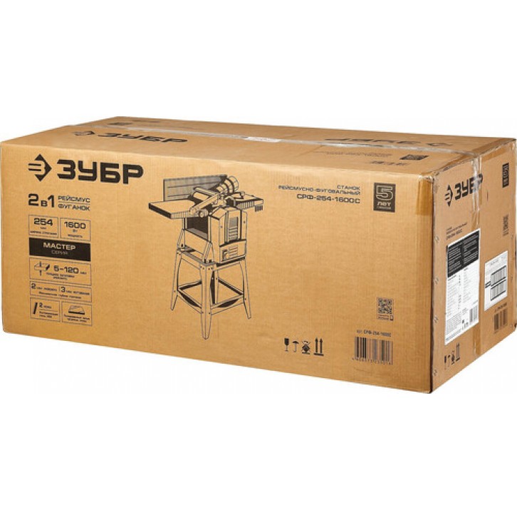ЗУБР 1600 Вт, 254 мм, станок рейсмусно-фуговальный СРФ-254-1600С Мастер