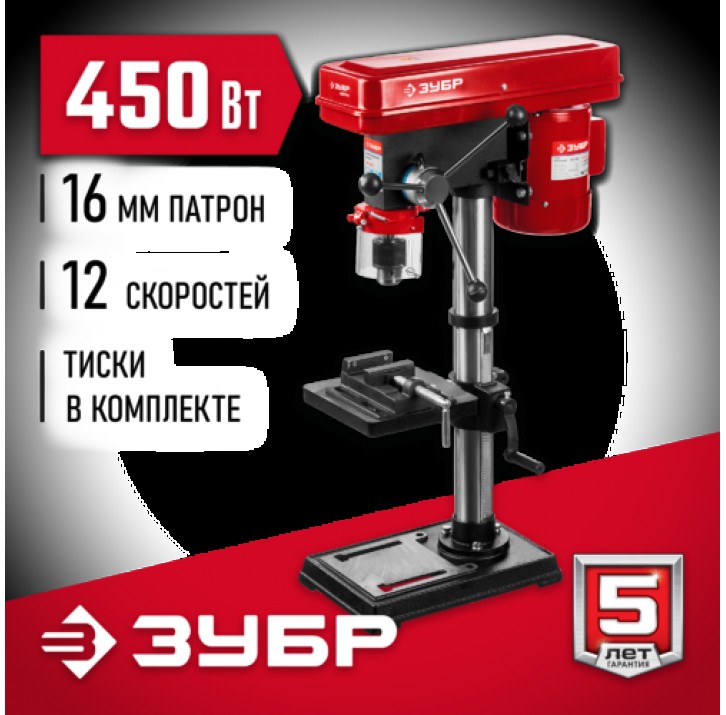 ЗУБР 450 Вт, 1, 5-16 мм, 50 мм, станок сверлильный ЗСС-450 Мастер
