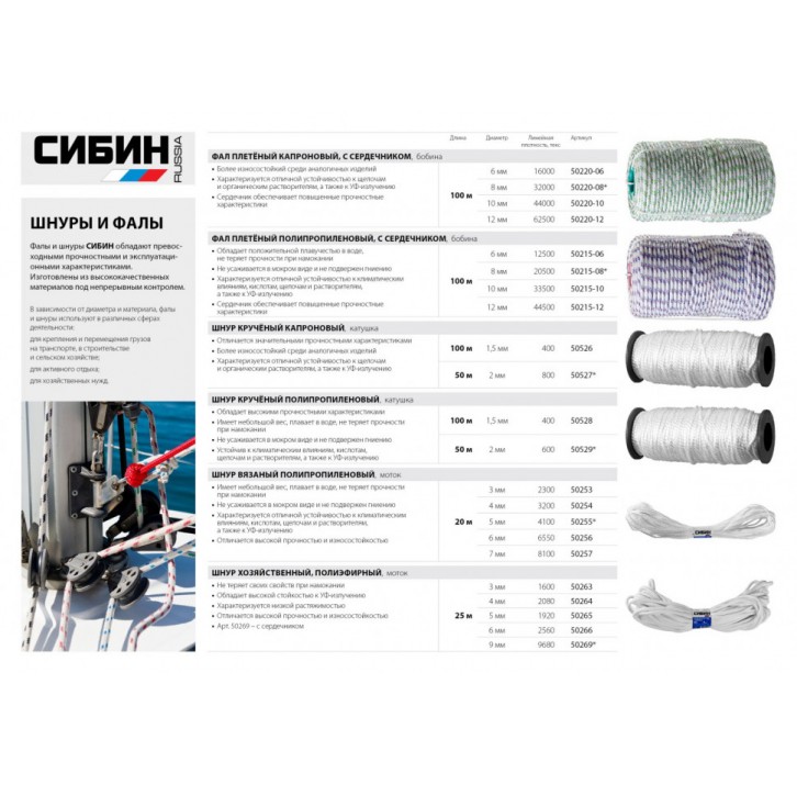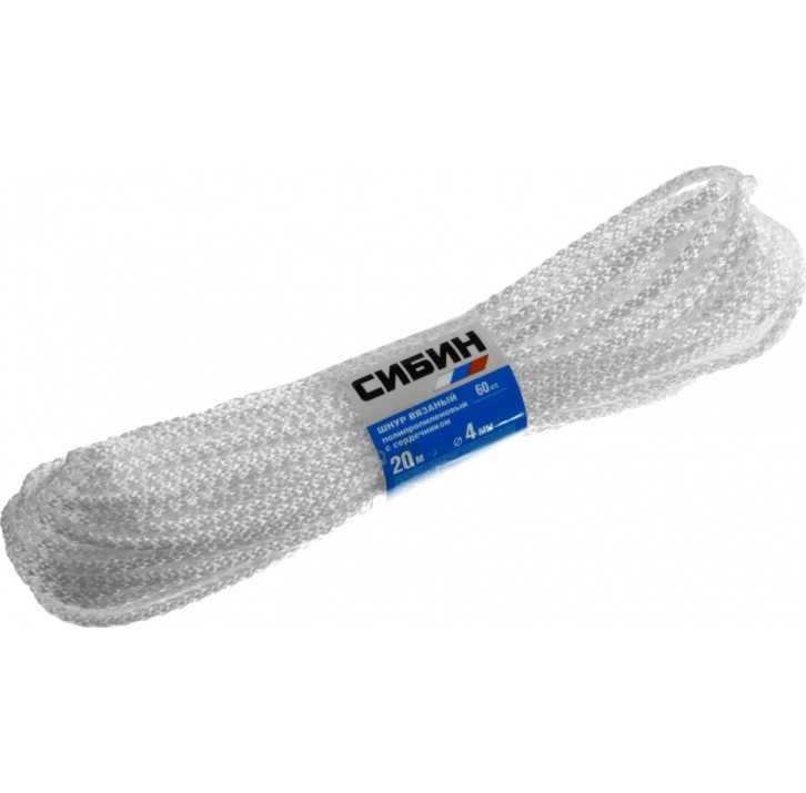 СИБИН 4 мм, 20 м, вязаный, с сердечником, белый, полипропиленовый шнур (50254)