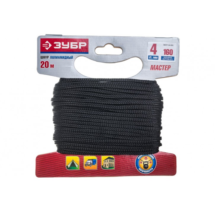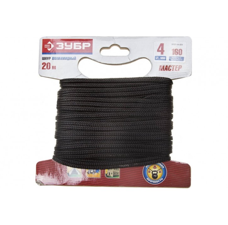 ЗУБР 4 мм, 20 м, черный, плетёный, повышенной нагрузки, полиамидный шнур (50321-04-020)