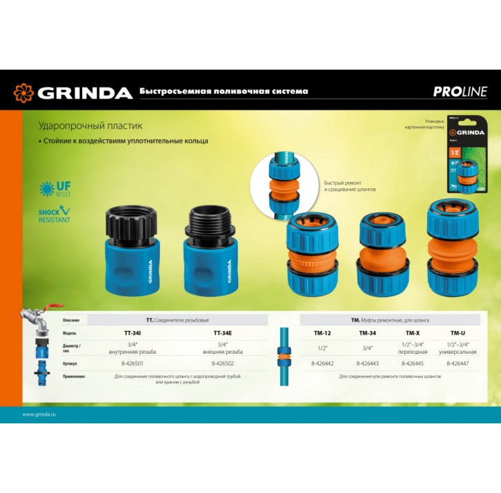 GRINDA TM-U, 1/2″ - 3/4″, универсальная, пластиковая с TPR, для шланга, ремонтная муфта, PROLine (8-