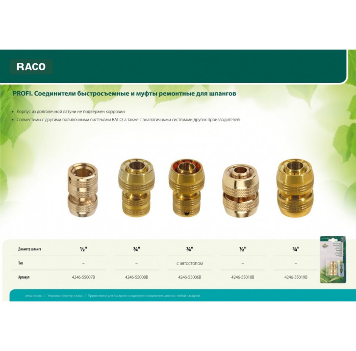 RACO Profi, 3/4″, из латуни, для шланга, быстросъемный соединитель (4246-55008B)