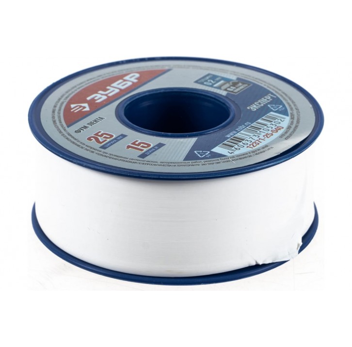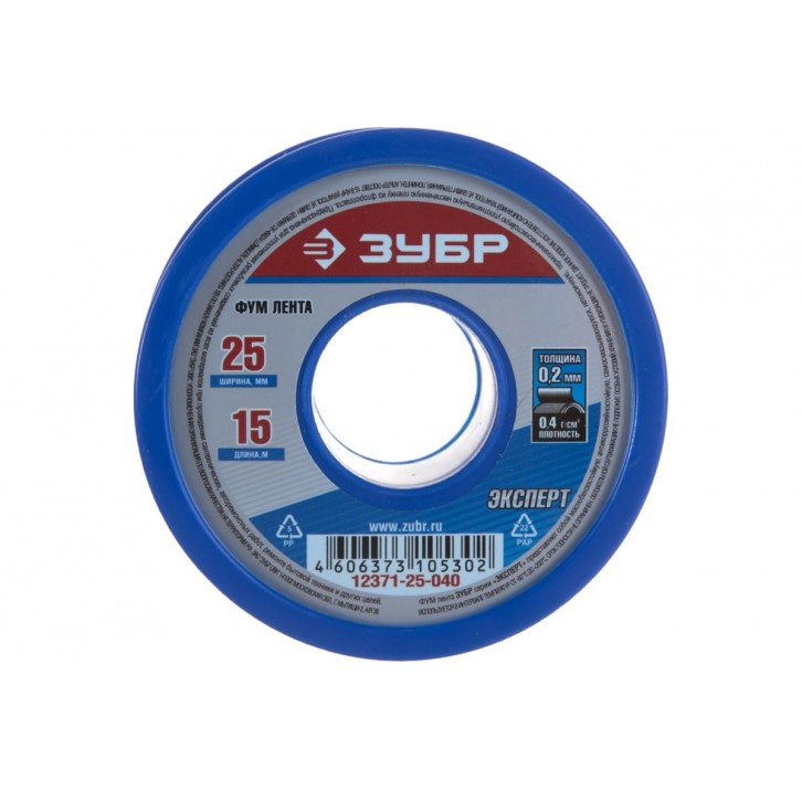 ЗУБР 0, 2 мм х 25 мм х 15 м, 0, 40 г/см3, Фум лента (12371-25-040)