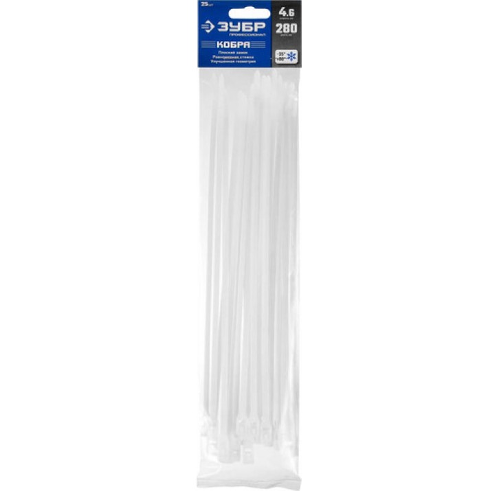 ЗУБР 280х4.6, 25 шт., хомуты нейлоновые белые, с плоским замком КОБРА 30930-46-280 Профессионал