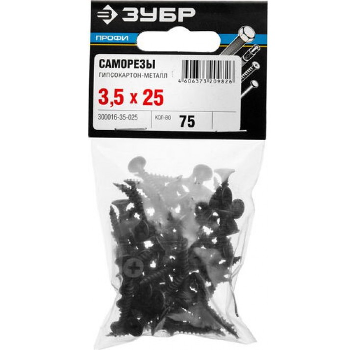 ЗУБР 25 х 3.5 мм, 75 шт., СГМ саморезы гипсокартон-металл 300016-35-025 Профессионал