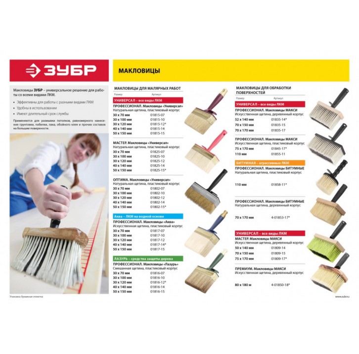 ЗУБР UNIVERSAL 70х150 мм, искусственная щетина, деревянный корпус, Макловица, МАСТЕР (01809-17)