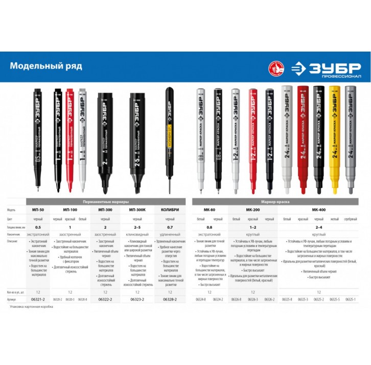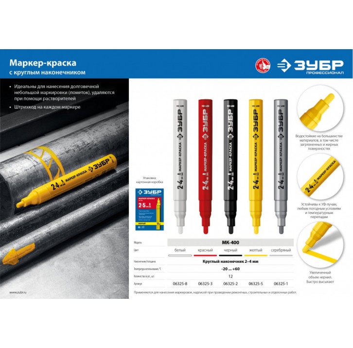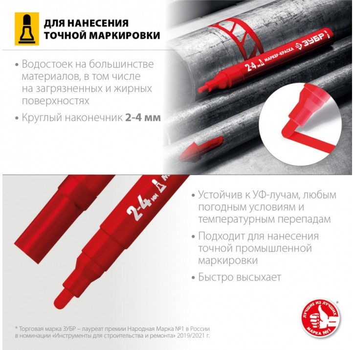 ЗУБР 2-4 мм, круглый, красный, Маркер-краска, ПРОФЕССИОНАЛ (06325-3)
