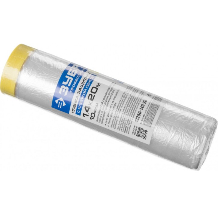 ЗУБР 20 м x 1, 4 м, 10 мкм HDPE, Пленка укрывная с клейкой лентой, ПРОФЕССИОНАЛ (12250-140-20)