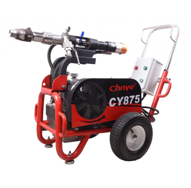 Применение гидропоршневого окрасочного аппарата CY875Агрегат CY875 предназначен для выполнения крупномасштабной работы, такой, как окраска железобетонных конструкций (тоннели, опоры мостов, колодцы, портовые конструкции, дымовые трубы и т.п.), гидроизоляционные работы (фундаменты, подвалы, плоские кровли), антикоррозионная обработка металлоконструкций (промышленные металлические конструкции, трубопроводы).Большая мощность агрегата обеспечивает возможность подсоединения шлангов высокого давления большой длины, что особенно удобно при окраске фасадов многоэтажных зданий, элементов конструкций мостов, вышек сотовой связи, дымовых труб и т.п.Кроме того, аппарат способен распылять не только обычные краски (эмали на органических растворителях, водоэмульсионные латексные и акриловые краски, грунтовки), но и материалы высокой вязкости: огнезащитные составы для металла, гидроизоляционные мастики, двухкомпонентные эпоксидные составы и т.п.Особенности конструкции окрасочного аппарата CY875Применение ременного привода ма