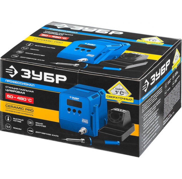 ЗУБР 50-480°C, 60 Вт, низкотемпературная, паяльная станция цифровая 55336 Профессионал