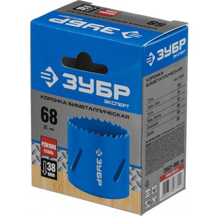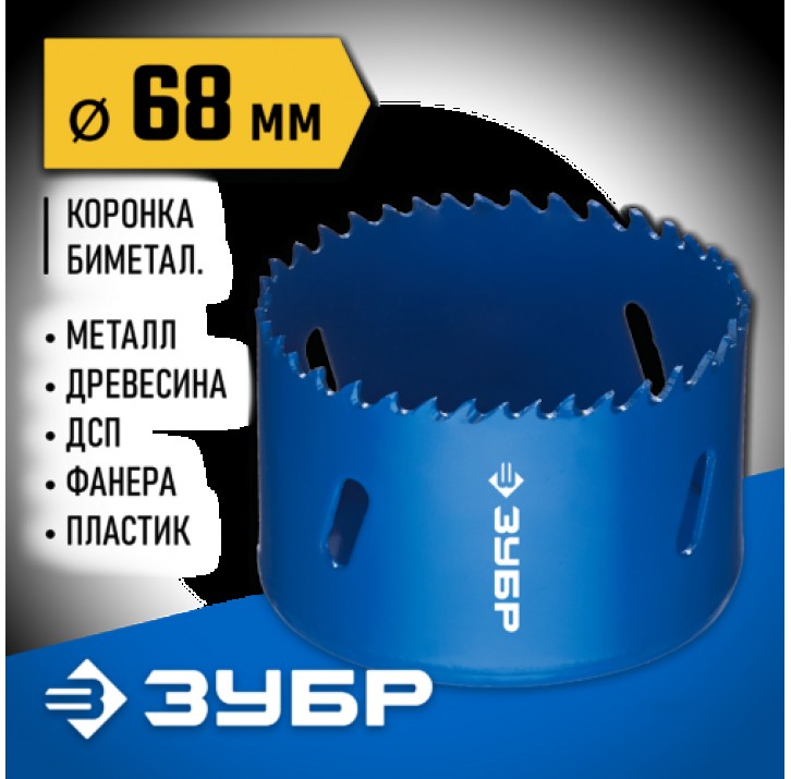 ЗУБР d 68 мм, глубина сверления до 38 мм, коронка биметаллическая 29531-068_z01
