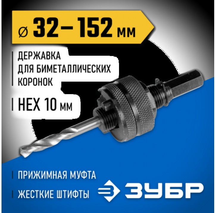 ЗУБР ф 32-152 мм, шестигранный хвостовик, державка для биметаллических коронок 29532_z01