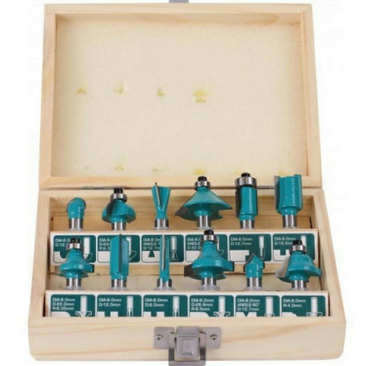 | Наименование | Набор фрез по дереву (хвостовик 8 мм, 12 предметов) TOTAL |