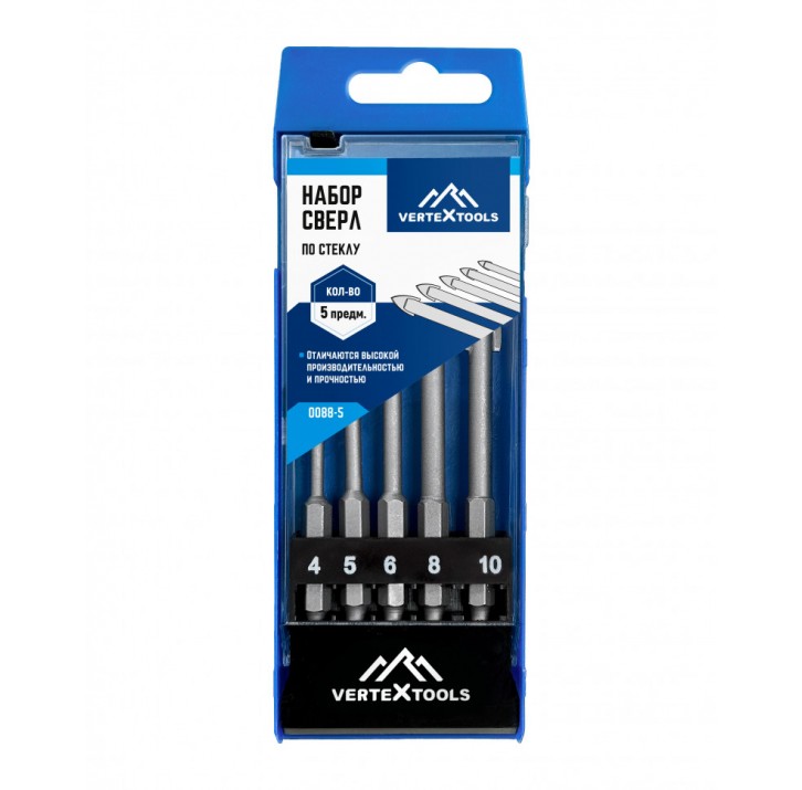 Набор сверел по стеклу и керамике 5 предметов (4-10мм) VERTEX