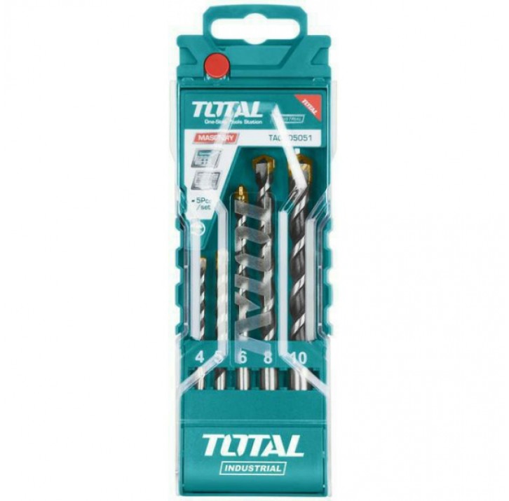 | Наименование | Набор сверл по бетону 4-10мм/5шт. 4x75, 5х85,6х100,8х120,10х120 TOTAL |