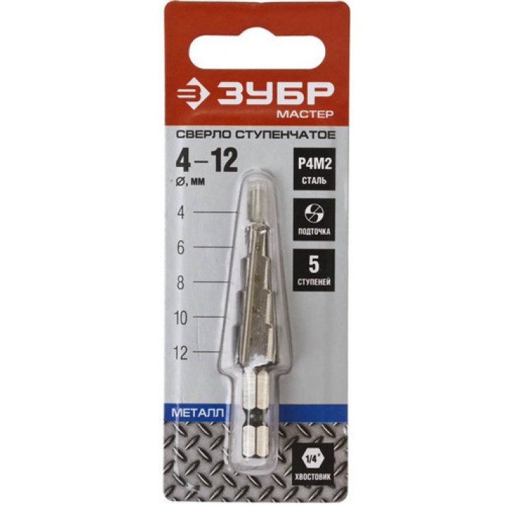 ЗУБР 4-12 мм, 5 ступеней, Р4М2 сверло ступенчатое 29665-4-12-5
