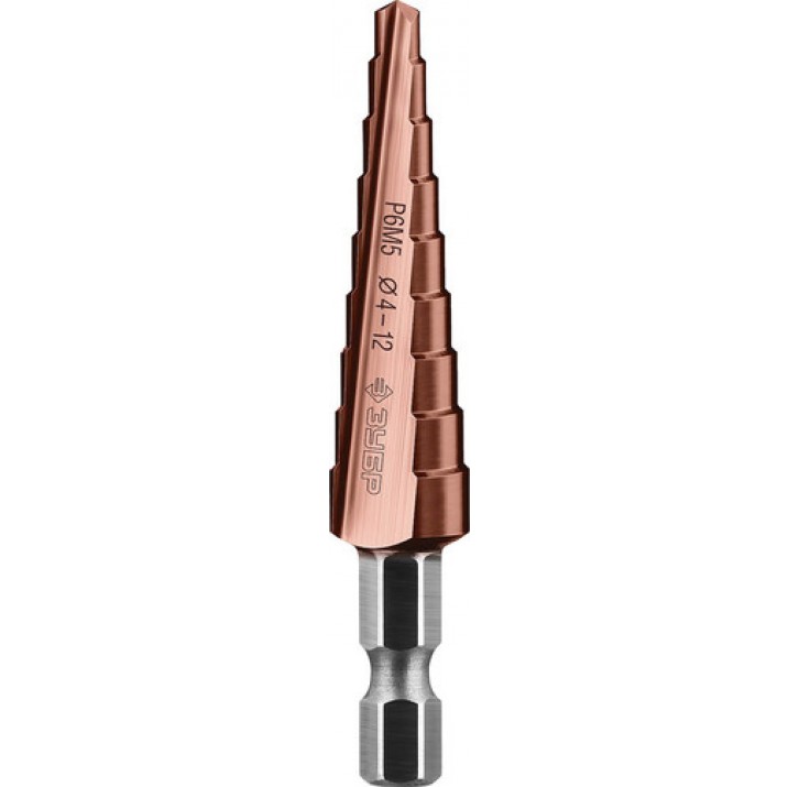 ЗУБР 4-12 мм, 9 ступеней, кобальтовое покрытие, сверло ступенчатое 29672-4-12-9_z01 Профессионал