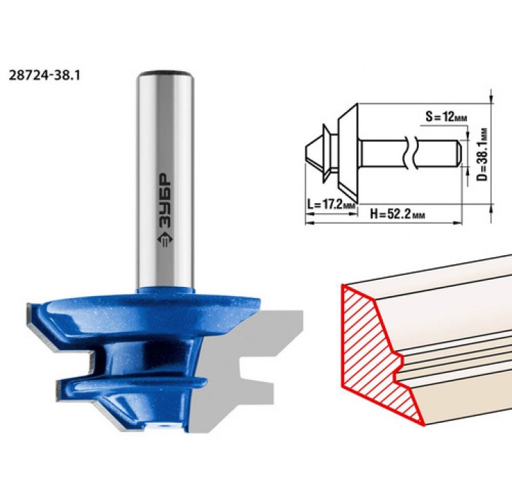 ЗУБР 38.1 x 17.2 мм, хвостовик 12 мм, фреза кромочная для углового сращивания 28724-38.1 Профессиона