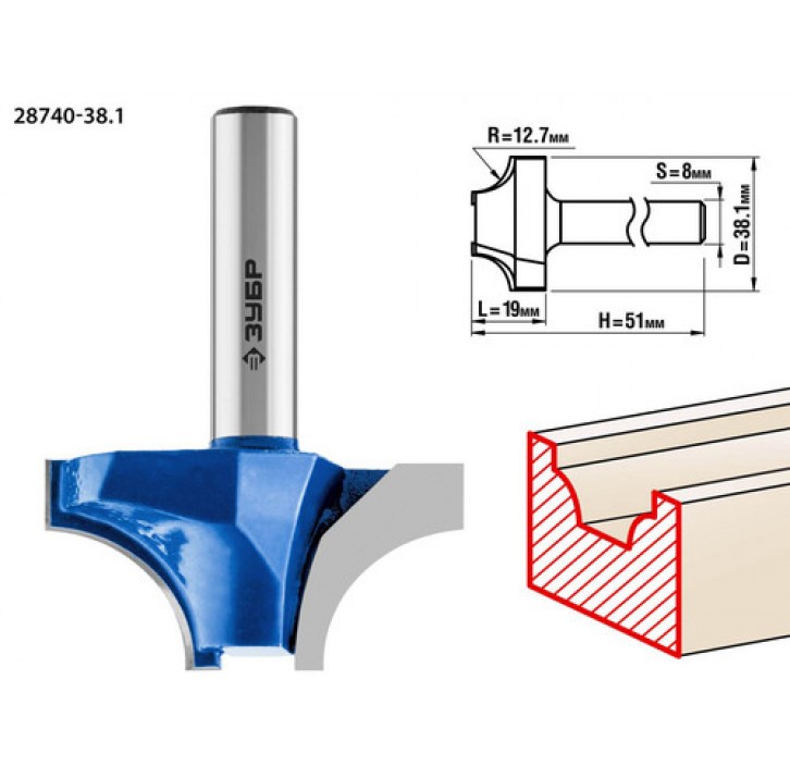 ЗУБР 38.1 x 19 мм, радиус 12.7 мм, фреза пазовая фасонная №1 28740-38.1 Профессионал