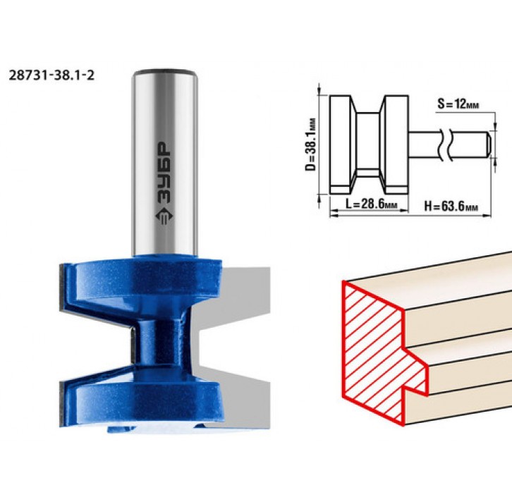 ЗУБР 38.1 x 28.6 мм, хвостовик 12 мм, фреза пазо-шиповая наборная 28731-38.1-2 Профессионал