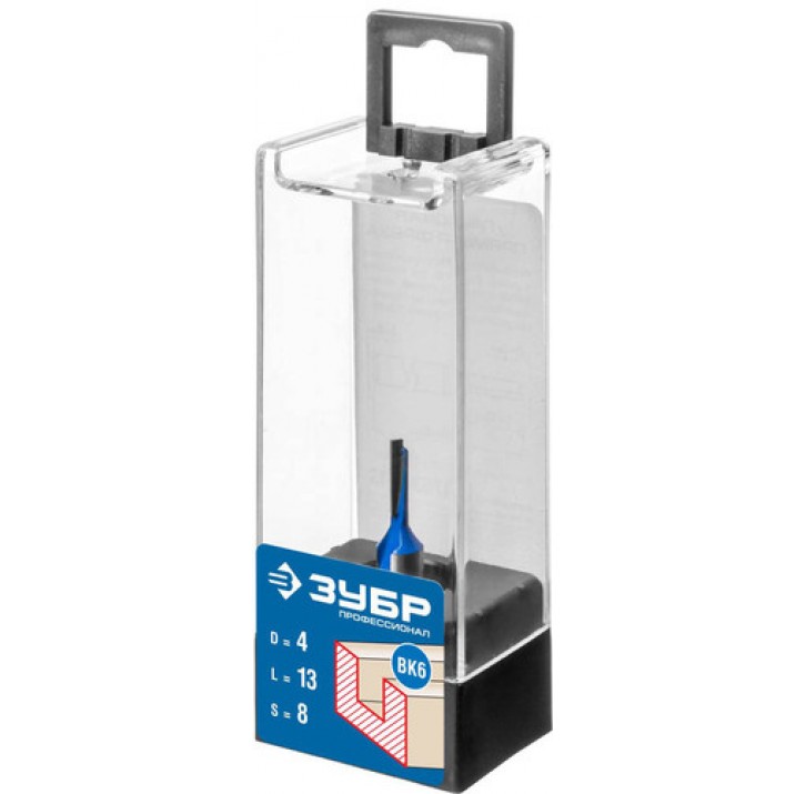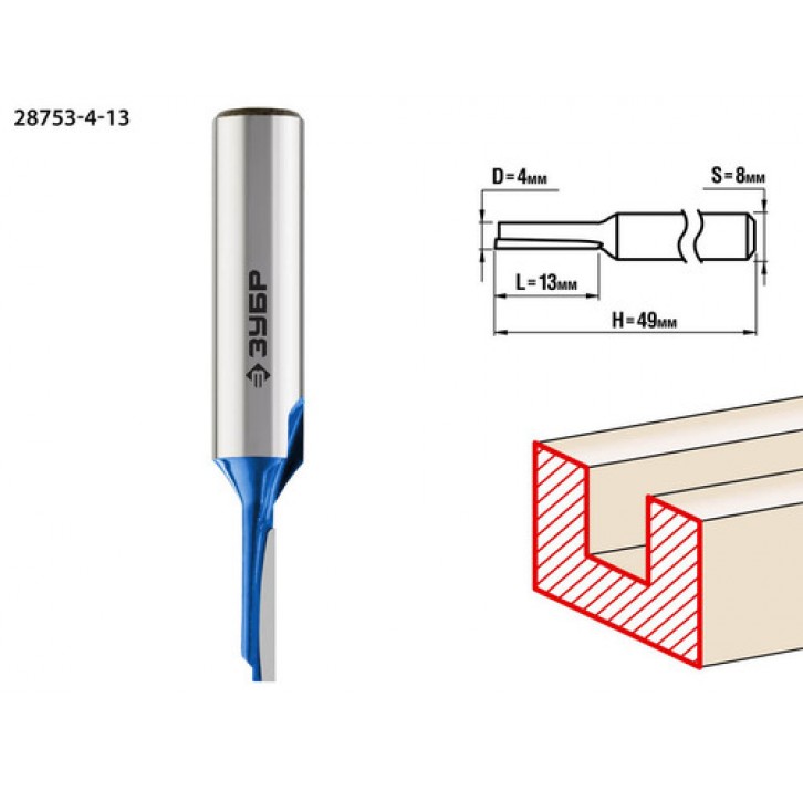 ЗУБР 4 x 13 мм, хвостовик 8 мм, фреза пазовая прямая 28753-4-13, Профессионал