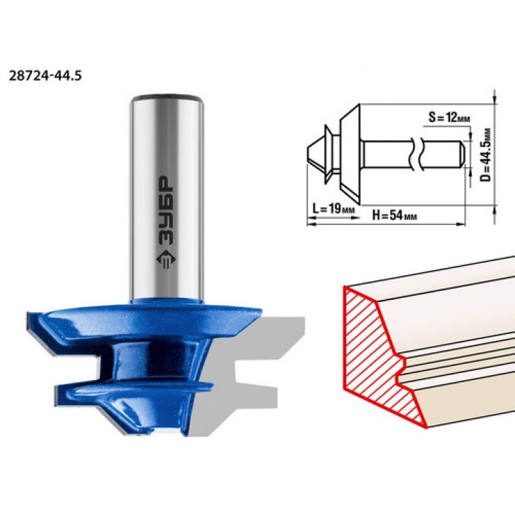 ЗУБР 44.5 x 19 мм, хвостовик 12 мм, фреза кромочная для углового сращивания 28724-44.5 Профессионал