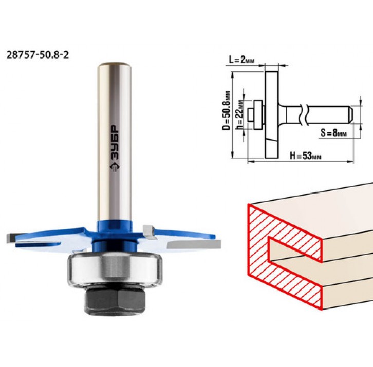 ЗУБР 50.8 x 2 мм, хвостовик 8 мм, фреза горизонтально-пазовая 28757-50.8-2 Профессионал