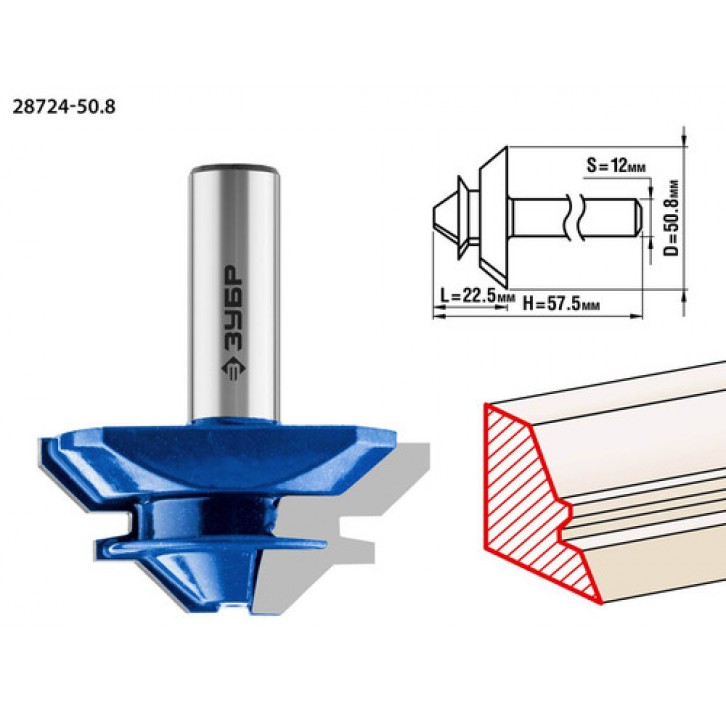 ЗУБР 50.8 x 22.5 мм, хвостовик 12 мм, фреза кромочная для углового сращивания 28724-50.8 Профессиона