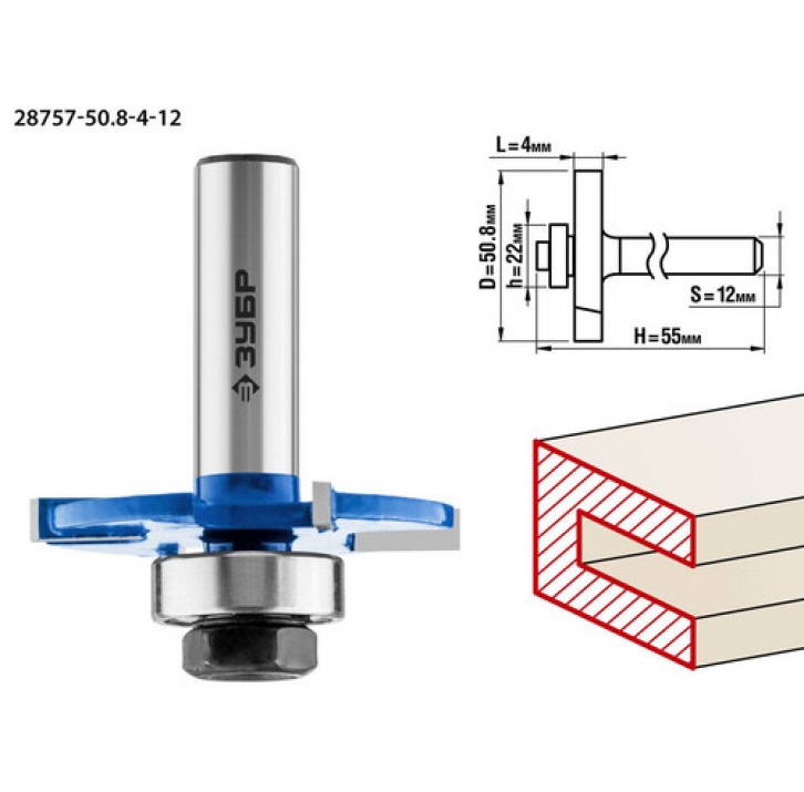 ЗУБР 50.8 x 4 мм, хвостовик 12 мм, фреза горизонтально-пазовая 28757-50.8-4-12 Профессионал