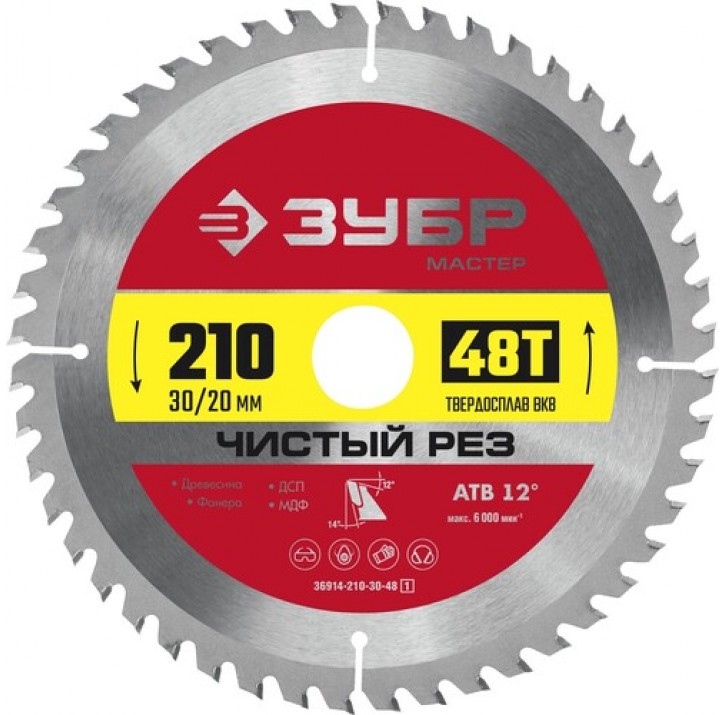 ЗУБР 210 x 30 мм, 48Т, диск пильный по дереву Чистый рез 36914-210-30-48_z01